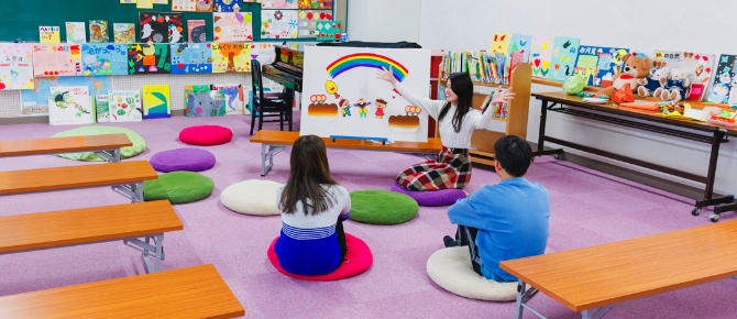 ピアノ、リトミック、オペレッタ、造形、絵本の読み聞かせなど、子どもの心を惹き付ける表現を幅広く身につけます。