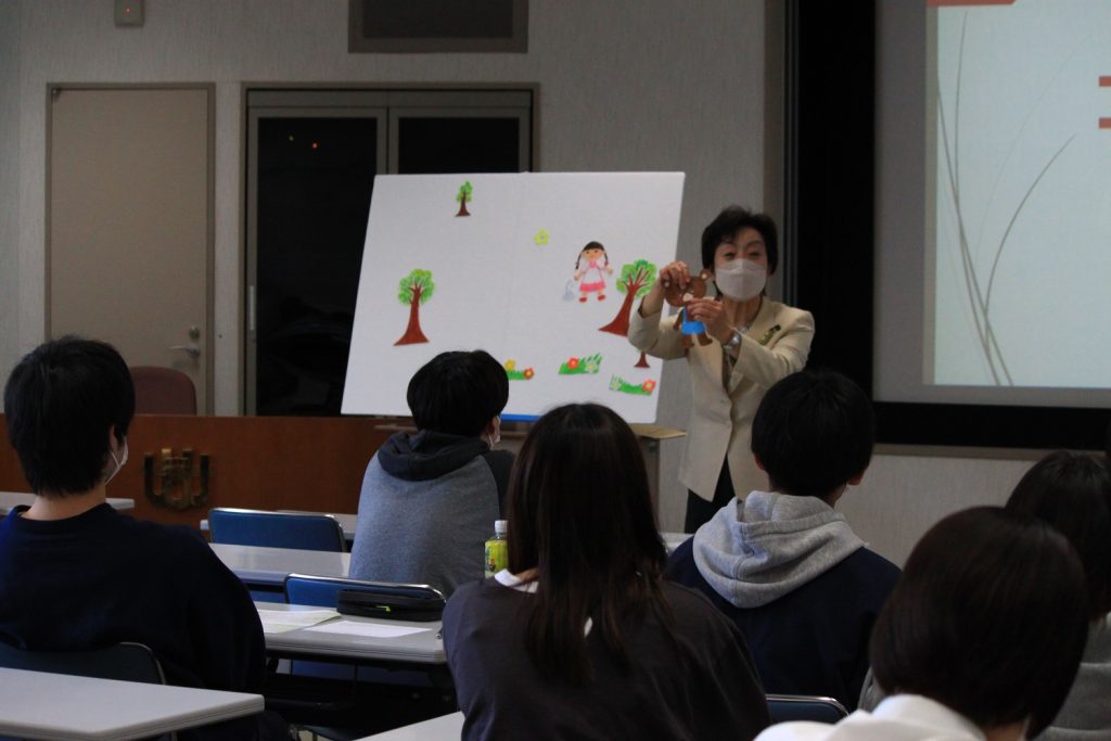 令和5年5月9日(火)2限に東京都公立幼稚園で園長先生として奉職されていた永井由利子先生をお招きし、ご講話いただきました。 こども文化学科3・4年次生が出席し…