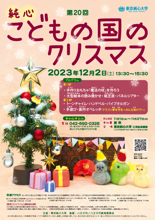 東京純心大学では、恒例のクリスマス行事の一環として、今年も12月2日(土)に「純心こどもの国のクリスマス」を開催いたします。