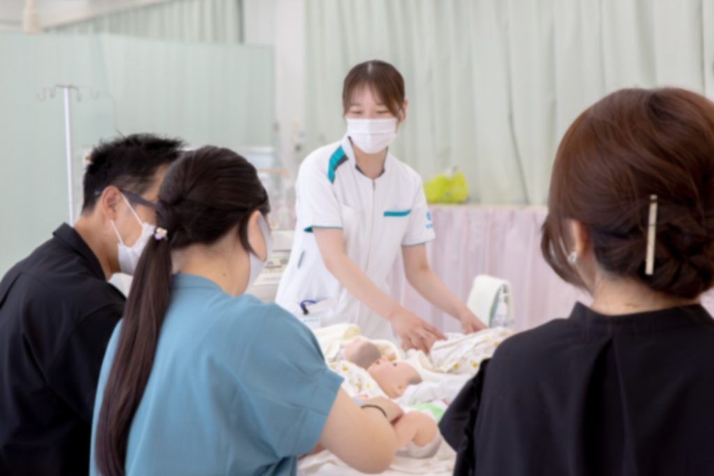 2回目のオープンキャンパスでは、「高齢者体験」、「赤ちゃんのモデル人形」を使用した看護体験、「英語」の模擬授業を行いました。