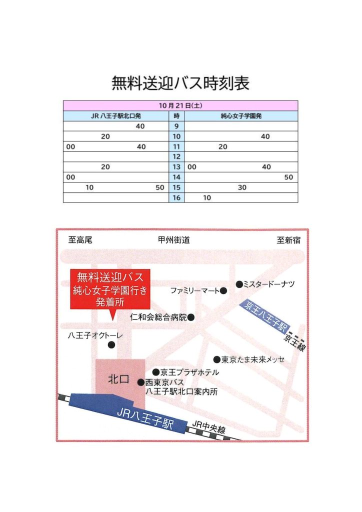 聖母祭当日は、無料送迎バス(マイクロバス)が往復しています。お気軽にご利用ください。なお、無料送迎バスの人数には制限がありますので、お急ぎの方は西東京バス(路線バス)をご利用くださいますようお願いいたします。