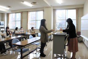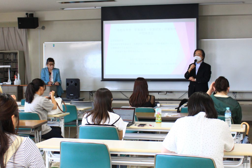 4年必修の卒業論文(「卒業論文」・「卒業研究」・「卒業制作」の三形式)は、3年次のゼミから本格始動します。1人の指導教員につき2~5名で構成されるゼミでは、レジュメやパワーポイント作成・発表・討論等を通じてそれぞれが自身の課題を深めます。ゼミで求められる「論理的に思考する」学修の基本形は、1年次前期の「現代文化セミナー」、後期の「純心チュートリアル」、2年次の「アカデミックライティング」を通じて徐々に形成されます。「入学前学習プログラム」も含めれば、4年間以上にわたって醸成される「論理的思考力」は、大学卒業後は現場で活かされることになります。中間発表会は、その達成度を計り、更に完成度を高める機会となっています。