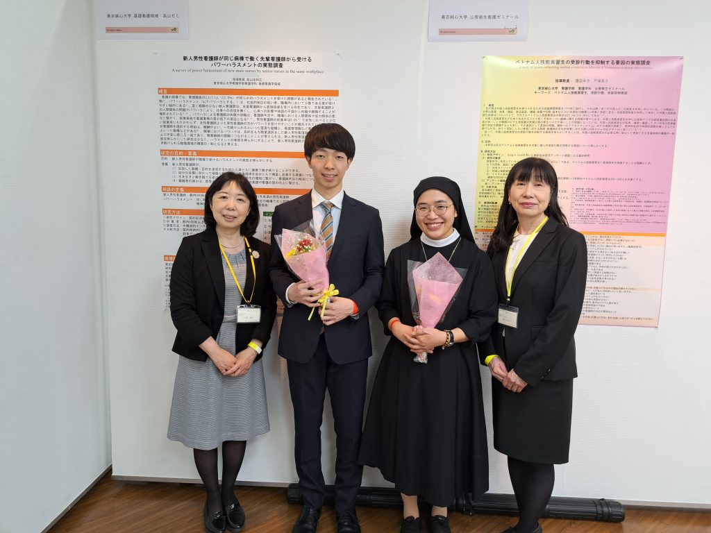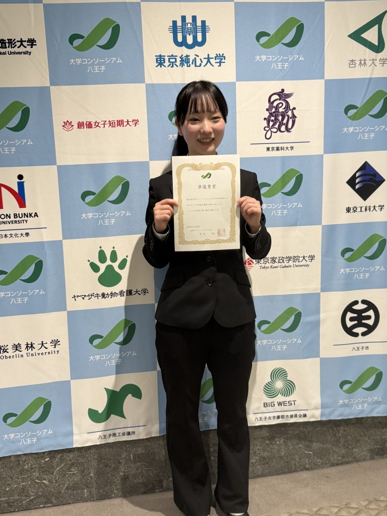2024年12月7日、8日に八王子市学園都市センターにて大学コンソーシアム八王子主催「第16回 大学コンソーシアム八王子 学生発表会」が開催されました。学生発表会は八王子市内25大学等から多くの学生が参加しており、多彩な学術分野が融合する合同発表会です。 本学から現代文化学部3年生1名、看護学部4年生2名が研究発表を行いました。学内とは違う雰囲気に緊張しながらも、これまでの研究の成果を堂々と発表することができ、参加した学生にとって大変学びの多い1日となりました。