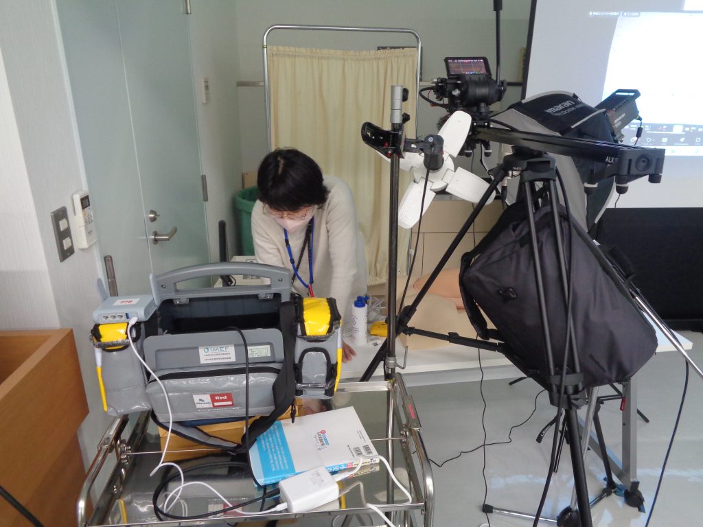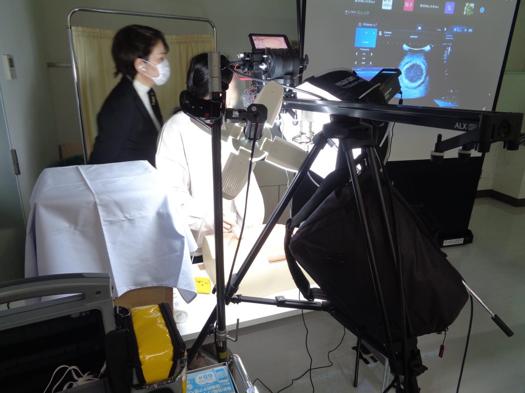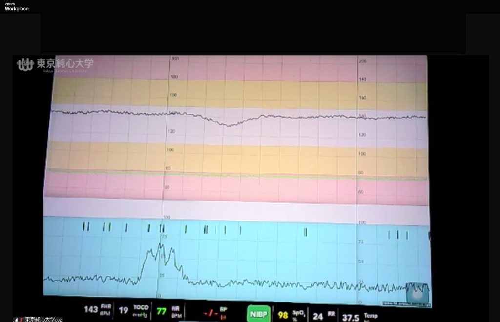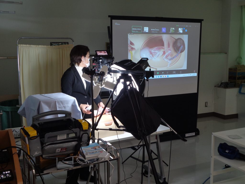 2月1日は、受講生7名が本学に来学し(他オンラインも受講生あり)、公益財団法人国際医学教育財団様から助成された「CTGi産科シナリオ・シミュレーター」、公益財団法人ウェスレー財団様から助成された「胎児超音波診断ファントム “SPACE FAN-ST”」、公益財団法人森村豊明会様から助成された「Viamo sv7 CUS-VSV7」の3点を用いて講義・演習を行いました。実際に受講生が助成していただいた各種機器を用いて体験操作をするなど、助産師としてのスキルを更に磨き上げる機会になりました。
