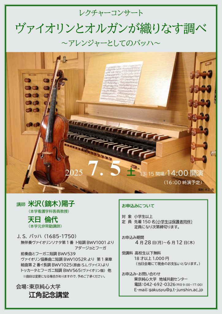 7月5日(土)に開催の、レクチャーコンサート ヴァイオリンとオルガンが織りなす調べ~アレンジャーとしてのバッハ~のお申込みを、6月26(木)まで延長し受付します。