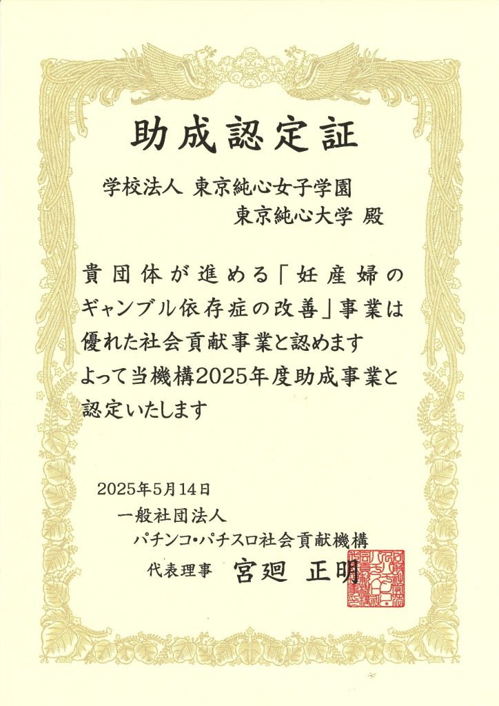 2025年5月14日、東京都新宿区にあります遊技会館にて、一般社団法人パチンコ・パチスロ社会貢献機構2025年度助成認定証授与式が挙行され、助成認定証が授与されました。