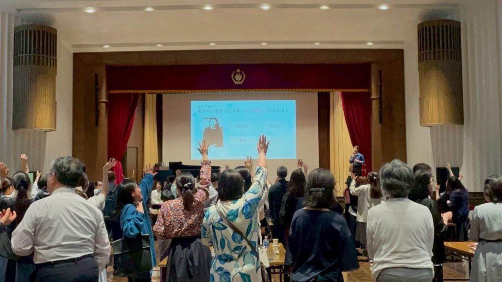 ミサ後のパーティーでは、前半のプログラムからつながるクイズタイムや、聖歌隊の演奏など和やかな時間が流れました。学生たちは、大学の枠を超えて出会った友人たちから、多くの刺激を得ているようでした。また神父様との出会いをとおして、ミサを深く体験する機会ともなりました。実りの多いこのプロジェクトが今後も続いていきますように。