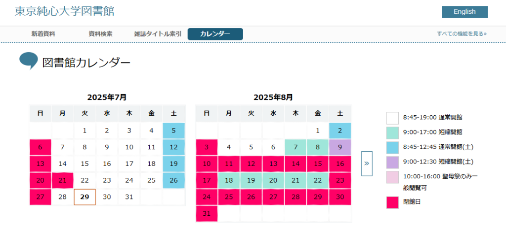 OPAC検索画面のカレンダーはこんな感じ↓