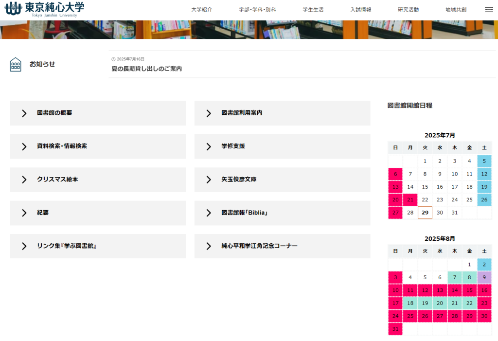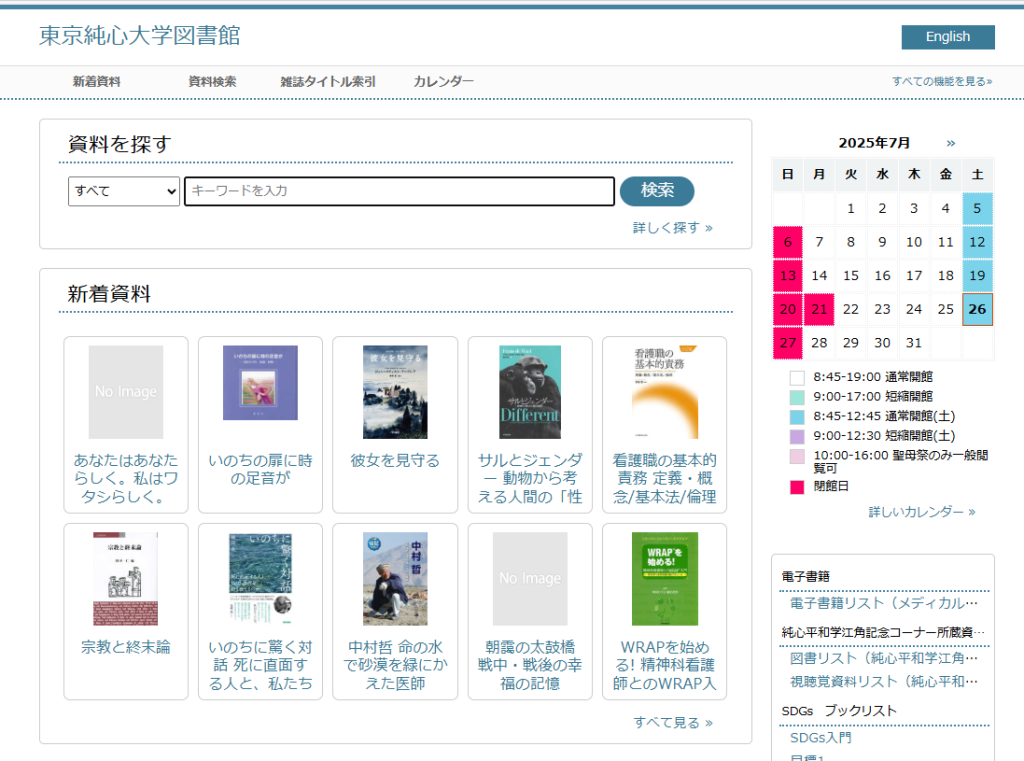 図書館開館カレンダーをリニューアルしました。このカレンダーは、図書館検索システム情報館OPACの機能を活用しているため、OPACの検索画面にも表示されるようになっています。