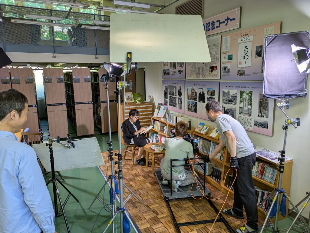 5月に行われた収録の様子(東京純心大学図書館 純心平和学江角記念コーナー)