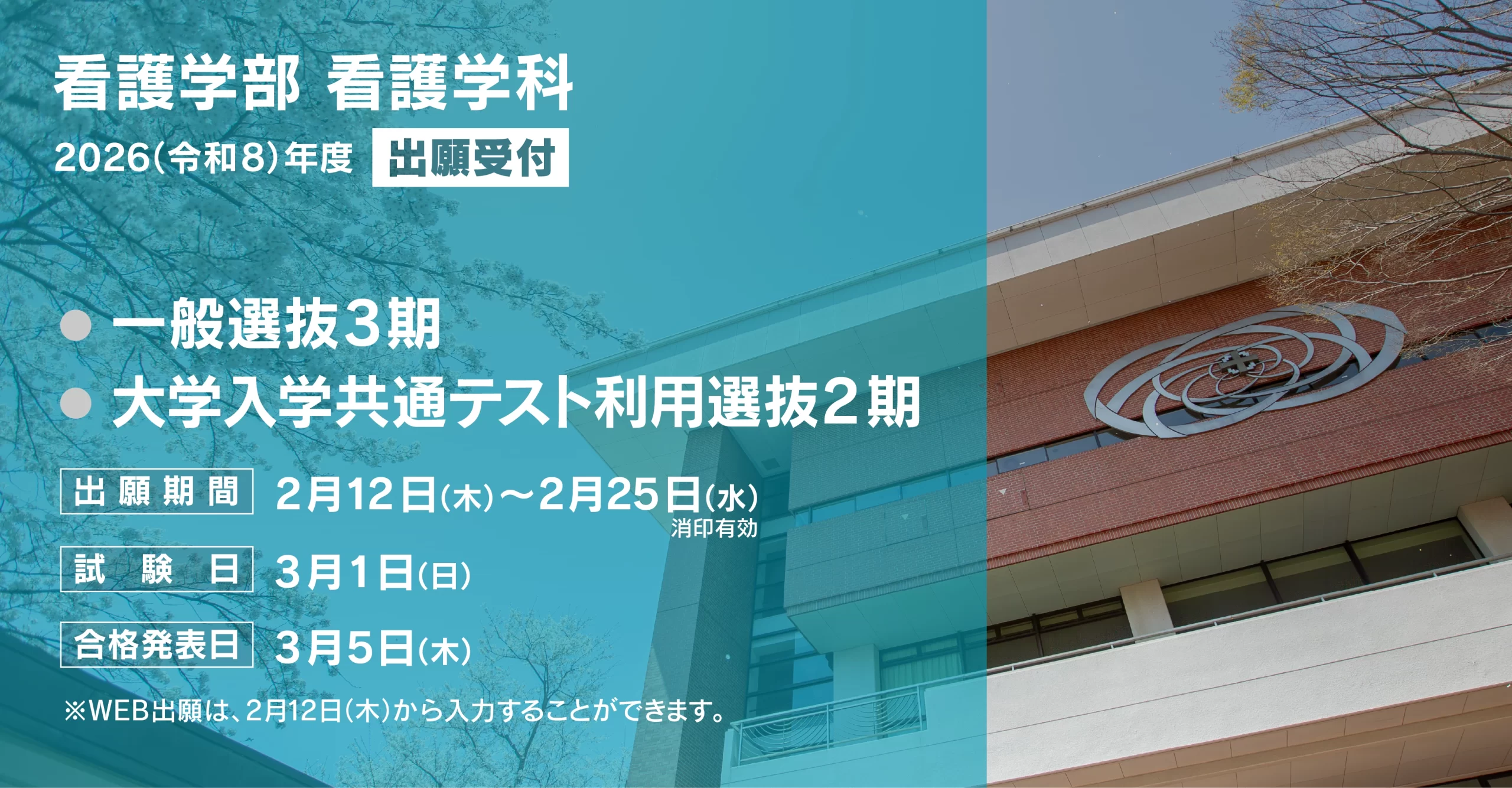 【受験生の方へ】2026(令和8)年度 看護学部看護学科 一般選抜3期・大学入学共通テスト利用選抜2期 出願期間