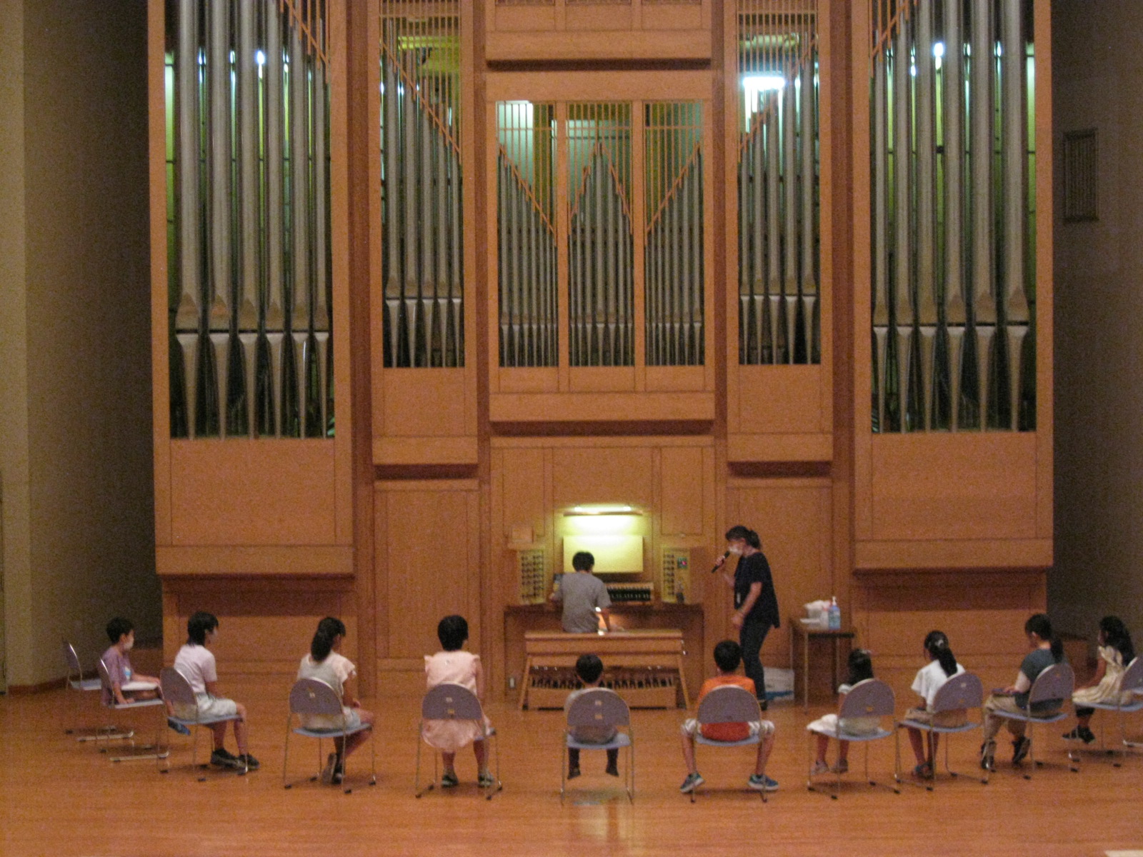 八王子市生涯学習センター川口分館と本学との共催で「来て!見て!弾いて!パイプオルガン」講座が開催されました。当日は小学校1年生から小学校6年生と中学校2年生の計11名が参加しました。前半は、パイプオルガンの歴史と構造のレクチャーを受けた後、パイプオルガンの内部を見学しました。後半は、各自演奏したい楽譜を持参し、実際にパイプオルガンを演奏しました。最後は、先生の演奏をみんなで楽しみました。参加者のみなさんからはとても楽しい講座だったとの感想が寄せられました。