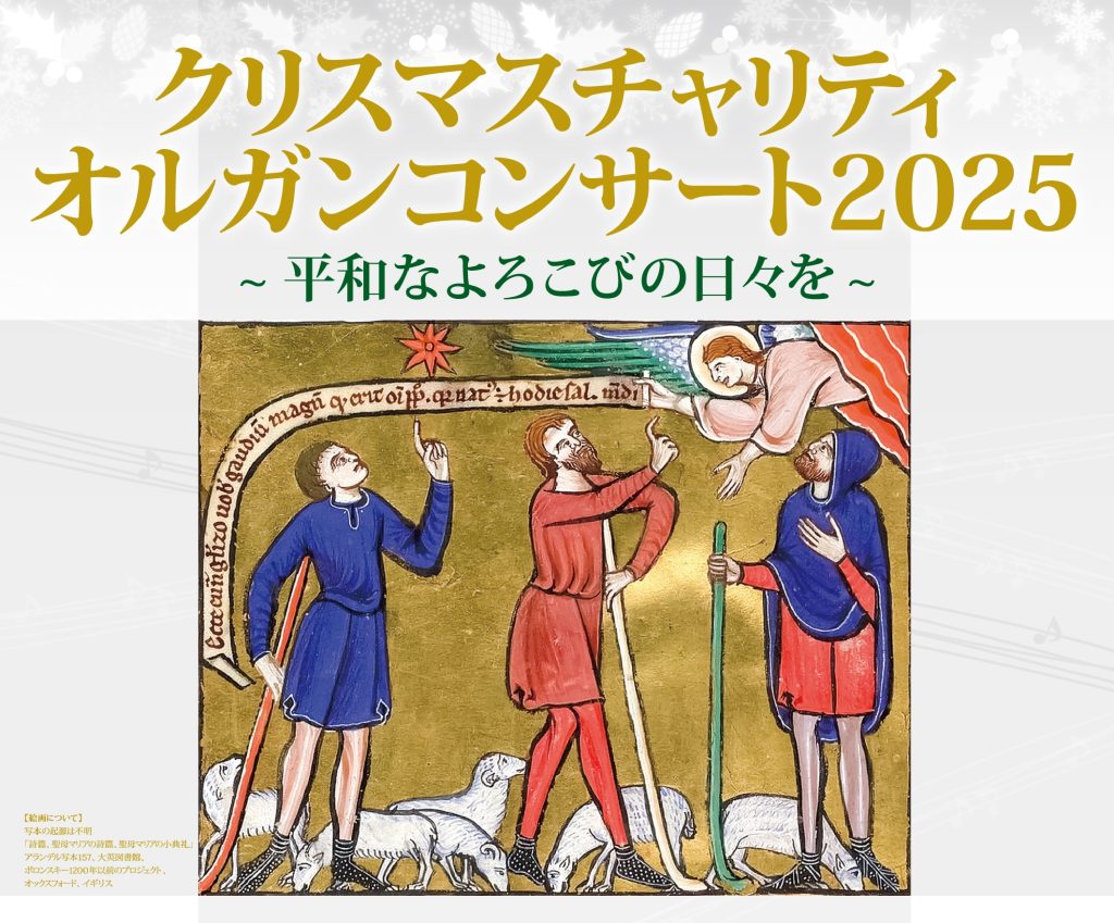 クリスマスチャリティオルガンコンサート2025開催に向けて、今年のポスターとチラシが完成しました。「羊飼いへのお告げ」の場面が白を基調とした清らかなデザインの…