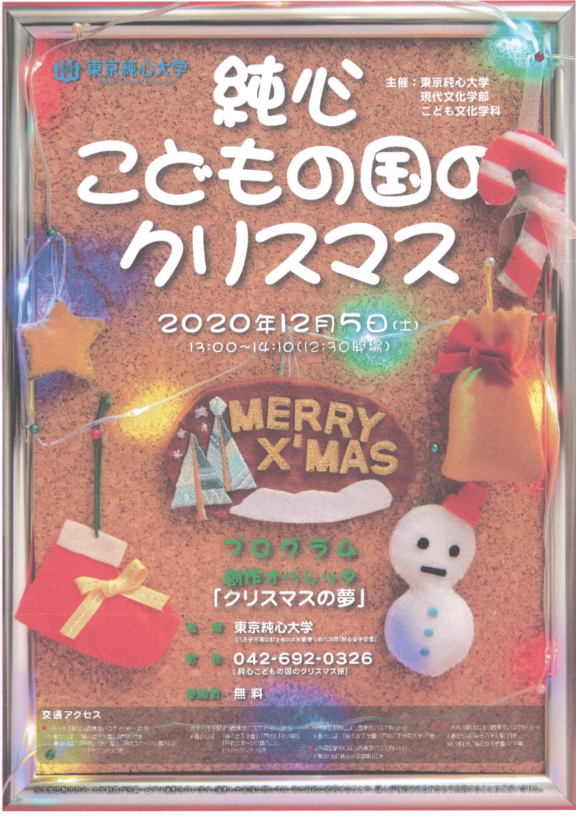 2020年12月5日(土)、「純心こどもの国のクリスマス」を開催いたしました。今年度は新型コロナウィルス感染症拡大防止のため、学内関係者の参加のみで開催するという異例の形となりました。