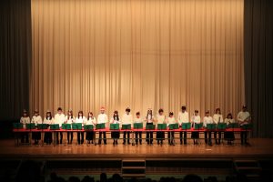 こども文化学科1年次生によるトーンチャイムと、有志の学生3名によるパイプオルガンの演奏です。綺麗な音色と息の合った演奏などに着目してお聴きください。