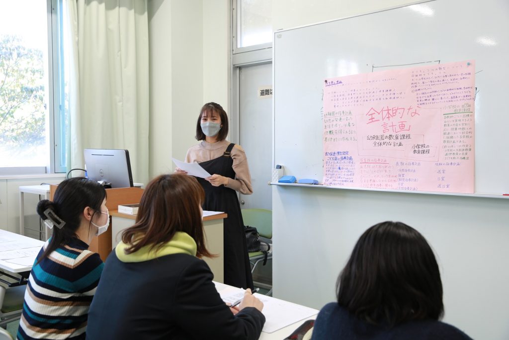 「教職・保育実践演習」の授業は、幼稚園教職課程、保育士課程の必修科目で4年次生が後期に履修する科目です。これまでの大学での学びと実習での経験を振り返ることによって、それぞれが目指すべき保育者像を探ります。