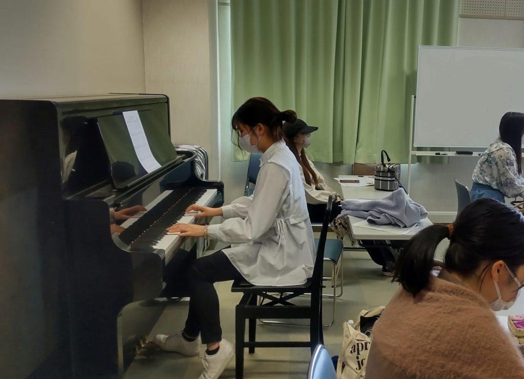4年生が「森のくまさん」を伴奏する場面もあり、学生の皆さんが積極的に授業に参加していました。
