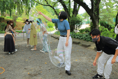 授業紹介① 「造形基礎I」シャボン玉を作ってみよう。