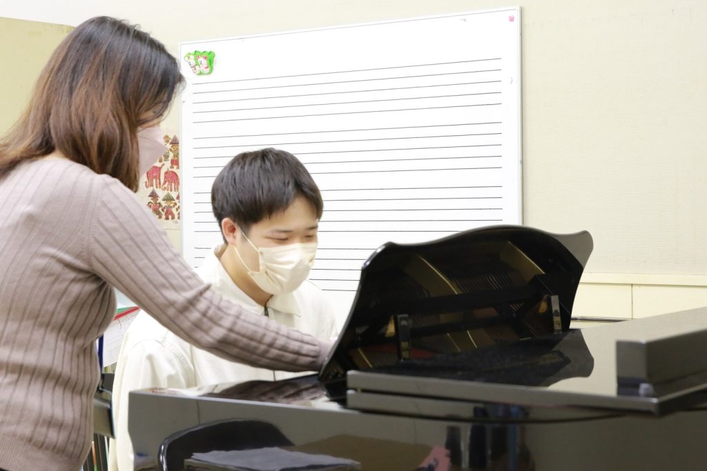 ピアノは保育士資格、幼稚園教諭免許の取得を希望される方には必修となっている大事な科目です。入学すると、すぐにレッスンが始まります。「入学前学習プログラム」のレッスンでは、ピアノ未経験の方でも入学後のピアノの授業に対する不安がなくなるよう、基礎の基礎から、1対1で指導します。