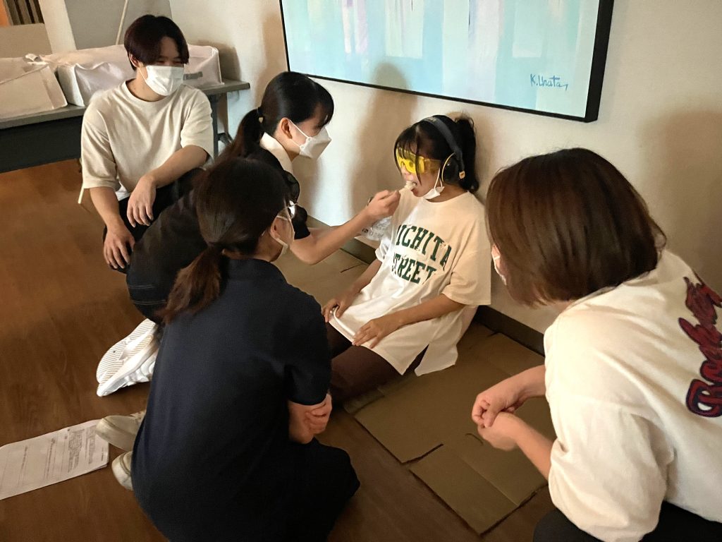 学生からは「段ボールに横になっても、私は大丈夫だけど高齢者なら痛いかも・・・」「これが何週間、何ヶ月も続くなんて辛い」「もっといい食事を希望できないかなど、常に考えながら支援に携わりたい」などの感想がありました。