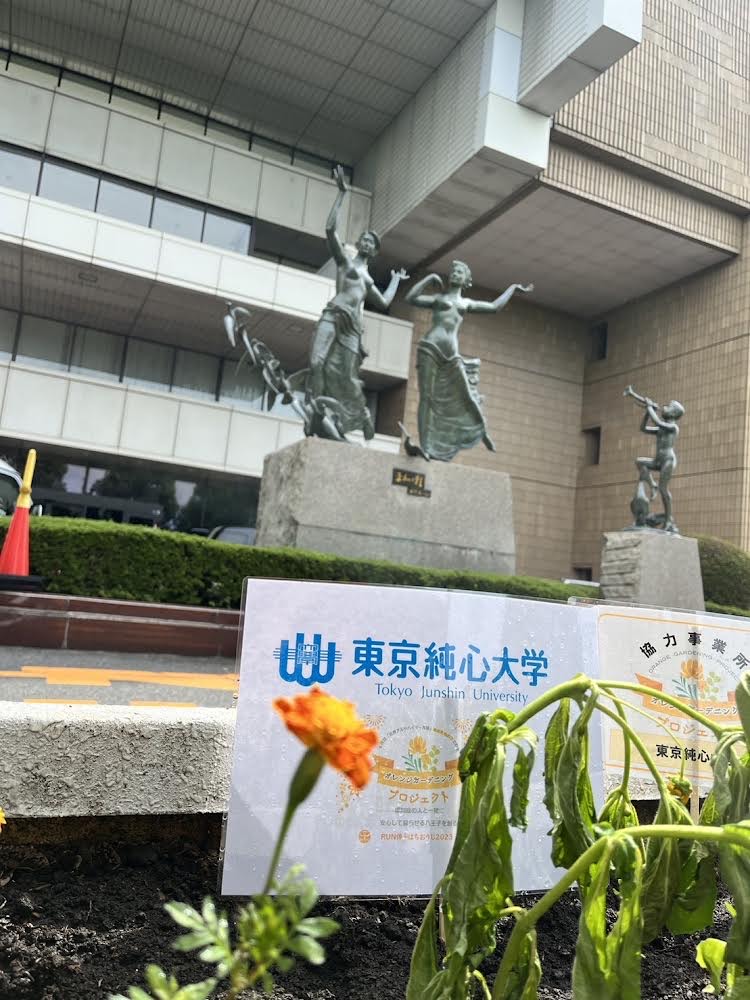 認知症の方を支援するシンボルカラーであるオレンジ色のマリーゴールドを八王子いっぱいに咲かせようというオレンジガーデニングプロジェクトに賛同し、本大学でも4月に種から育て始めました。