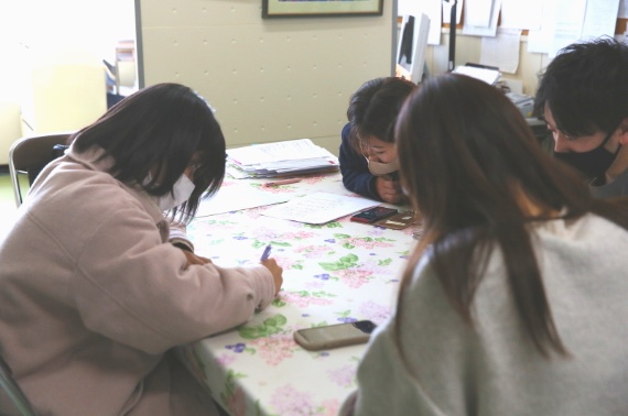 作品の使用後に再度電話インタビューを行い、作品の使いやすさや改善点、感想などを聞きました。「学生の作品だよ」と職員が声を掛けたら「今までと違った感触で楽しいなあ」「これは指先のリハビリにいいね」と利用者さんから声が上がり,その姿を観て職員も嬉しくなったとコメントを頂きました。この様子を聞いて、学生達は充実感をえていました。 グループでの話し合いを重ね、最終日のまとめの発表会では、実際に体験してきたかのように生き生きと発表していました。コロナ渦でさまざまな制約がある中、一つ一つ協力し合って取り組むことは大きな学びにつながりました。