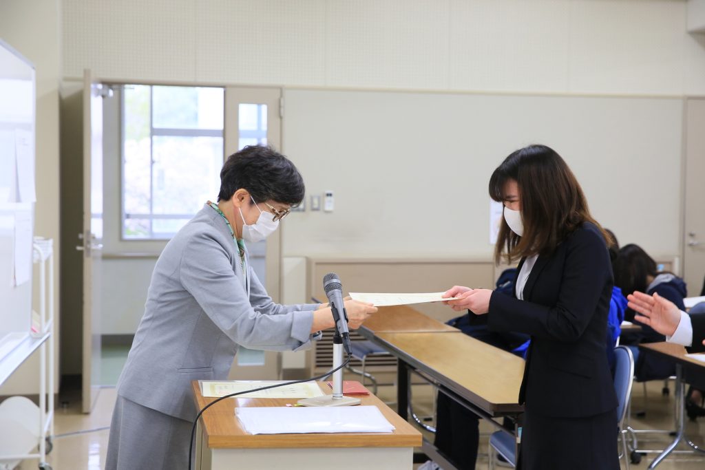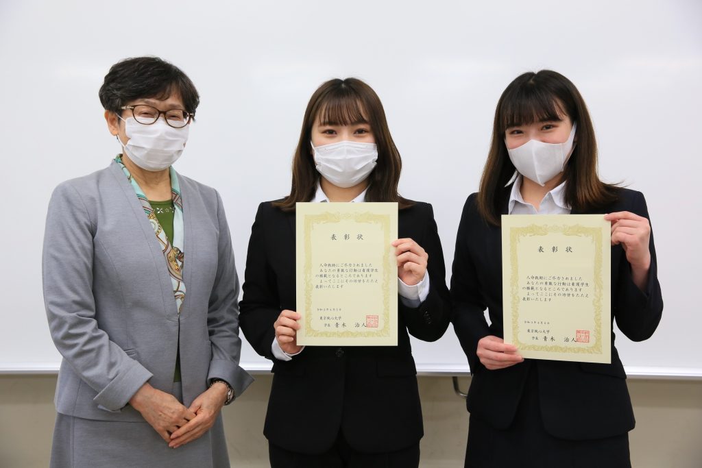 看護学科では、人命救助を行った功績を称え、令和3年4月5日、4年生2名の表彰式を行いました。