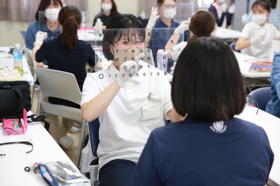 「透明文字盤の演習では透明文字盤を使えるようになることで、声を出せない患者様や手を思うように動かせない患者様と接する際、他の人に聞くのではなく患者様本人にその人の気持ちを聞くことができると思いました。」
