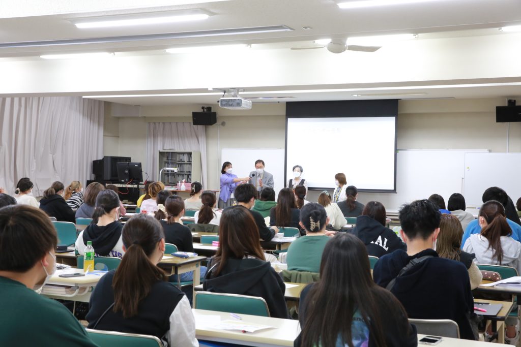 2年生の保健医療福祉システム論という科目では、保健医療福祉に携わる多職種の役割と地域住民との協働のあり方について学修します。