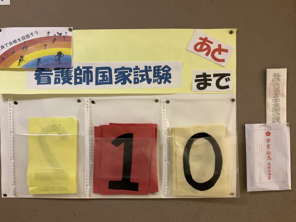 2023年1月25日(水)、今月12日に実施されます看護師国家試験に向けて壮行会が行われました。卒業生5名が忙しい勤務の合間に応援に駆けつけてくれました。
