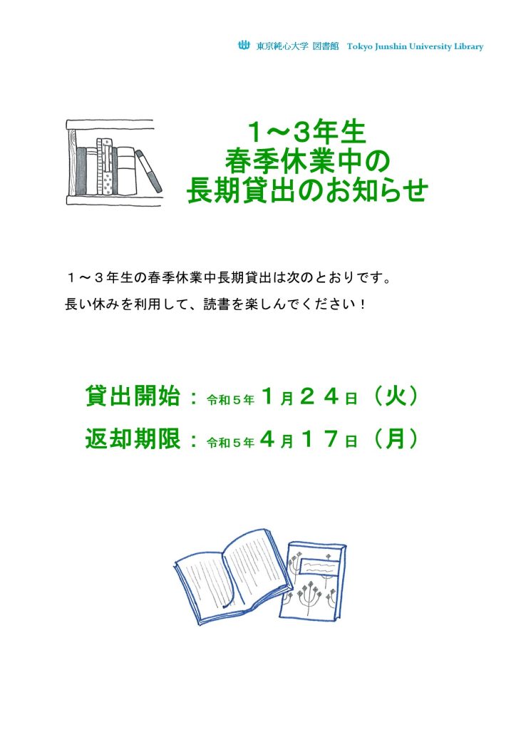 1~3年生へ 春季休業中の図書貸出しについて