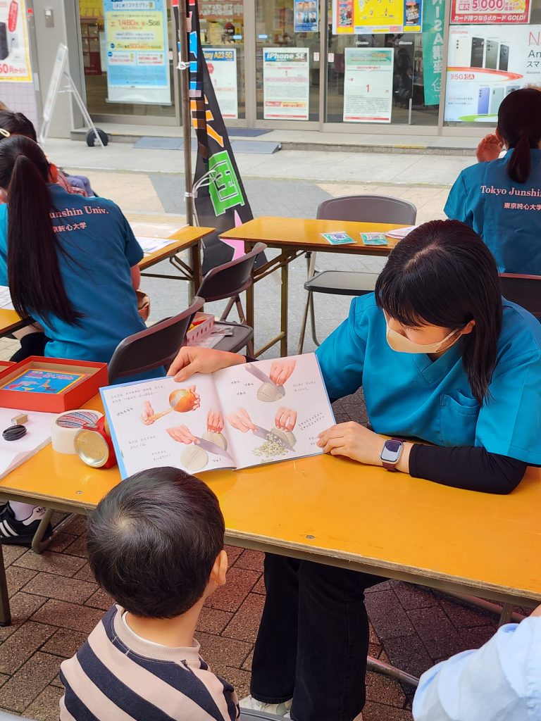当日は、血圧測定や、絵本の読み聞かせと折り紙を体験できるブースを設置しました。