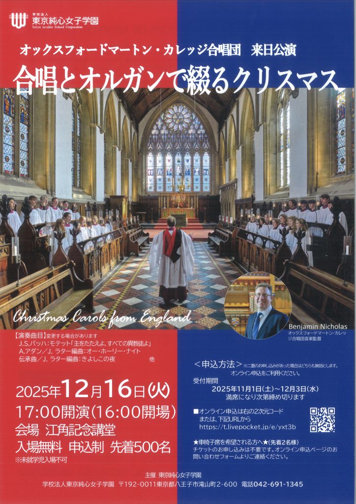 開催日時:2025年12月16日(火) 17:00開演(16:00開場)会場: 江角記念講堂入場無料 申込制 先着500名※未就学児入場不可 <申込方法 …