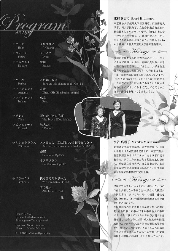 SAORI KITAMURA 歌曲リサイタル 小さき花の詩vol.7