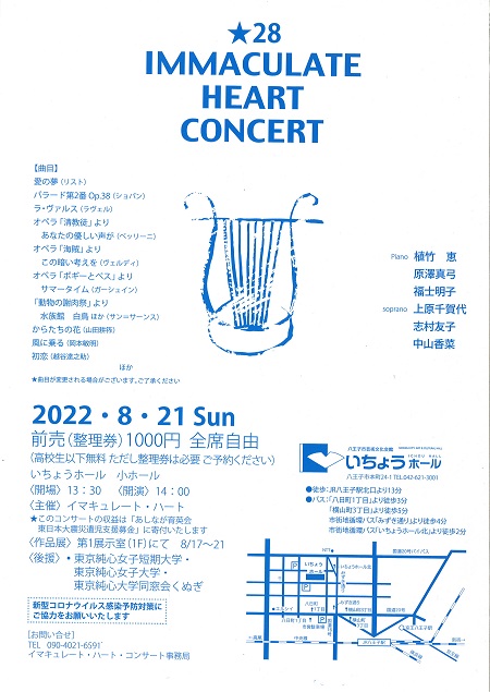 卒業生有志によるコンサート「Immaculate Heart Concert」(イマキュレートハートコンサート)のお知らせです。
